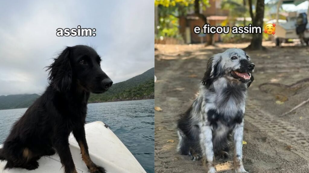 Se você notar essas mudanças, vale agendar uma consulta com o veterinário para descartar outras causas, como alergias, fungos, infecções de pele, problemas hormonais ou reação a medicamentos. Só o profissional consegue dizer com segurança se se trata mesmo de vitiligo. No vídeo compartilhado nas redes sociais de Vitoria, ela mostra o antes e depois do seu cachorro: