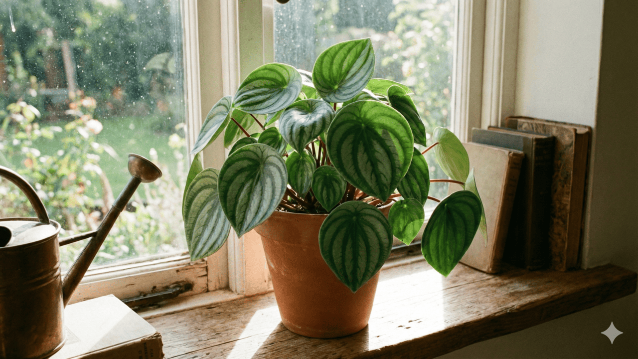 A peperômia-melancia possui alto poder de regeneração. Ao dividir uma folha em seções com nervuras e mantê-las em ambiente úmido, você consegue gerar várias mudas saudáveis de forma simples e econômica.