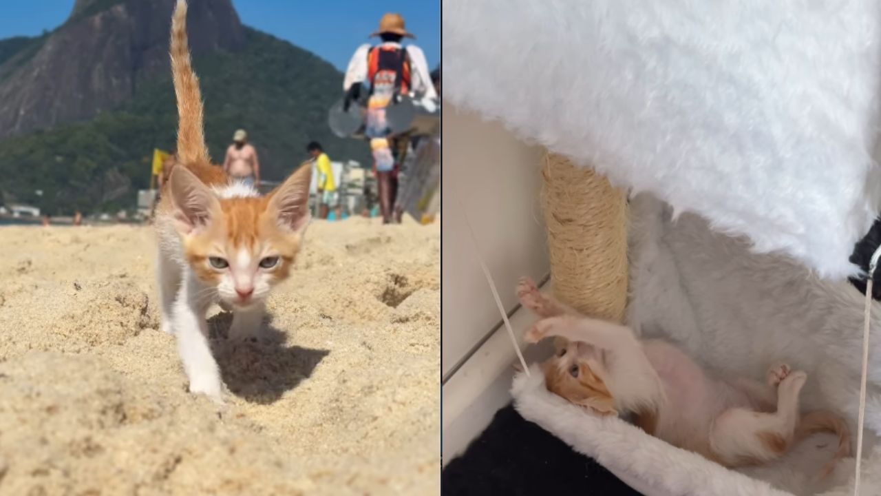 As primeiras aventuras de Roma chamaram atenção porque incluíam praia e piscina, lugares pouco associados a gatos. Em Copacabana, ela teve contato com a areia sempre usando guia, coleira adequada e sob supervisão constante, mostrando que, com cuidado, alguns felinos podem explorar novos ambientes.