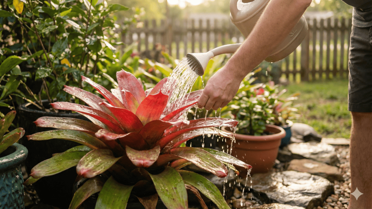 Evite focos de mosquito nas bromélias sem deixar a planta seca. Aprenda a técnica de transbordamento para renovar a água do tanque central, garantindo a saúde da planta e a proteção da sua família no verão.