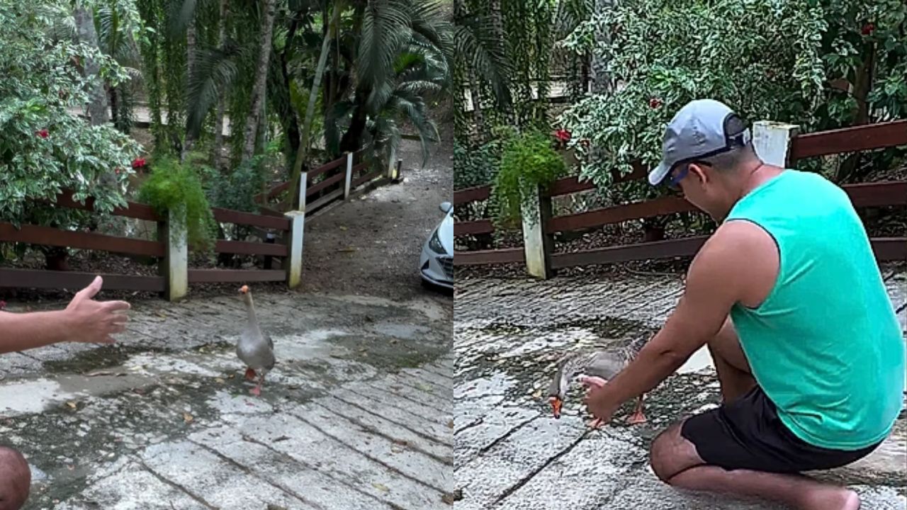 Imagine chegar em uma chácara tranquila, chamar “Chico!” e ver um ganso correndo na sua direção para ganhar um abraço, como se fosse um cachorro de estimação. Foi exatamente isso que aconteceu em Pedro de Toledo, no interior de São Paulo, e o vídeo desse momento fez muita gente repensar a forma como gansos podem se relacionar com humanos e participar da rotina de um espaço de lazer em meio à natureza.