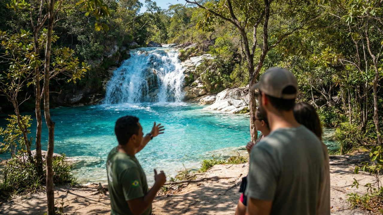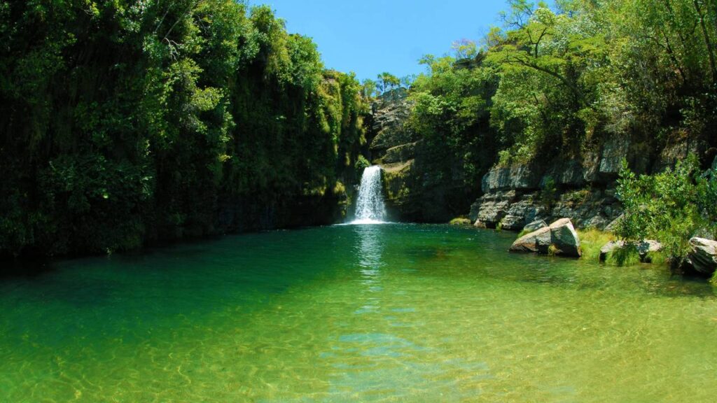 • Cachoeira Santa Bárbara: águas em tons de azul-turquesa dentro do Território Kalunga, em Cavalcante. O acesso exige guia da comunidade quilombola.
