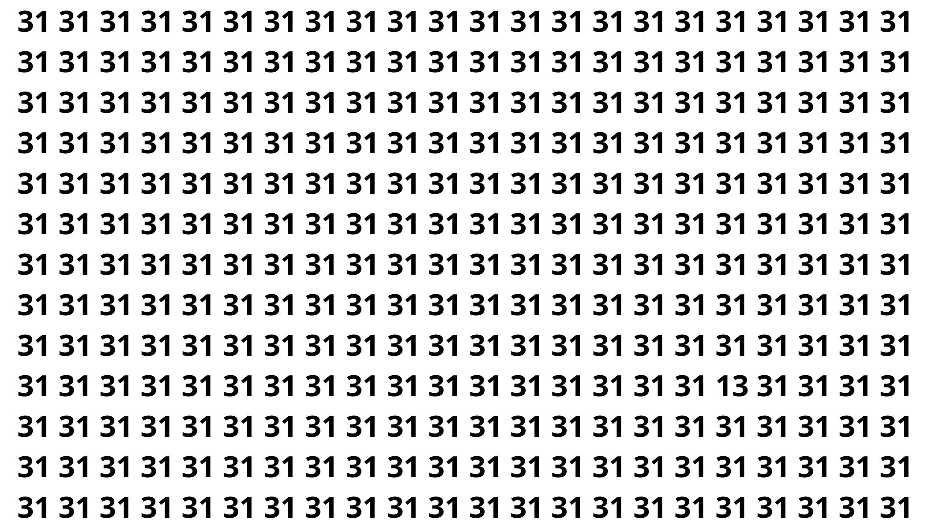 Se você ainda está tentando, respire fundo: o número escondido é 13. Ele se camufla perfeitamente entre os 31, explorando a semelhança visual e a tendência natural do cérebro de filtrar padrões repetidos. Por isso, apenas alguns conseguem achá-lo de primeira.