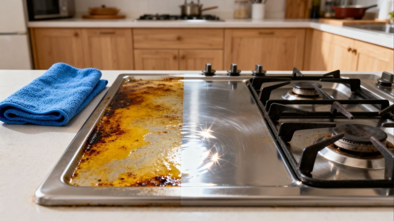 Muitas pessoas cometem o erro de usar excesso de produto ou não enxaguar corretamente. Isso cria uma película invisível que deixa o fogão com toque oleoso mesmo após a limpeza.
