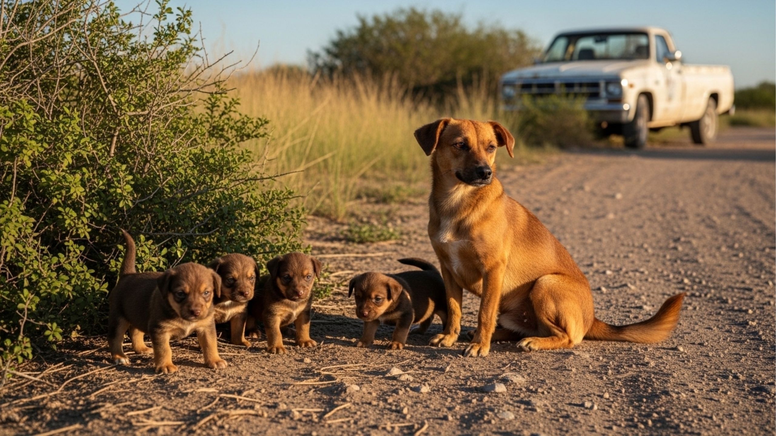 O que parecia ser apenas mais um animal à beira da estrada se transformou em uma história emocionante de sobrevivência e instinto materno. Um casal que trafegava por uma via pouco movimentada avistou uma cachorrinha abandonada, visivelmente assustada e desorientada. Ao reduzir a velocidade para ajudá-la, eles jamais imaginariam que estavam prestes a descobrir uma ninhada surpresa escondida entre o mato, com quatro pequenos rostinhos cor de chocolate observando tudo em silêncio.