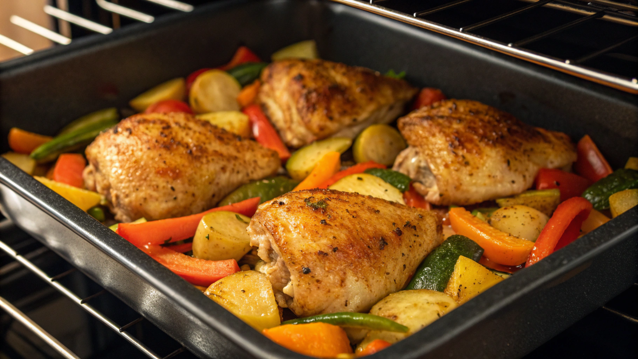 Prepare um almoço rápido com frango e legumes no forno em quinze minutos. Receita prática, nutritiva e sem bagunça, ideal para quem busca praticidade e sabor diário.