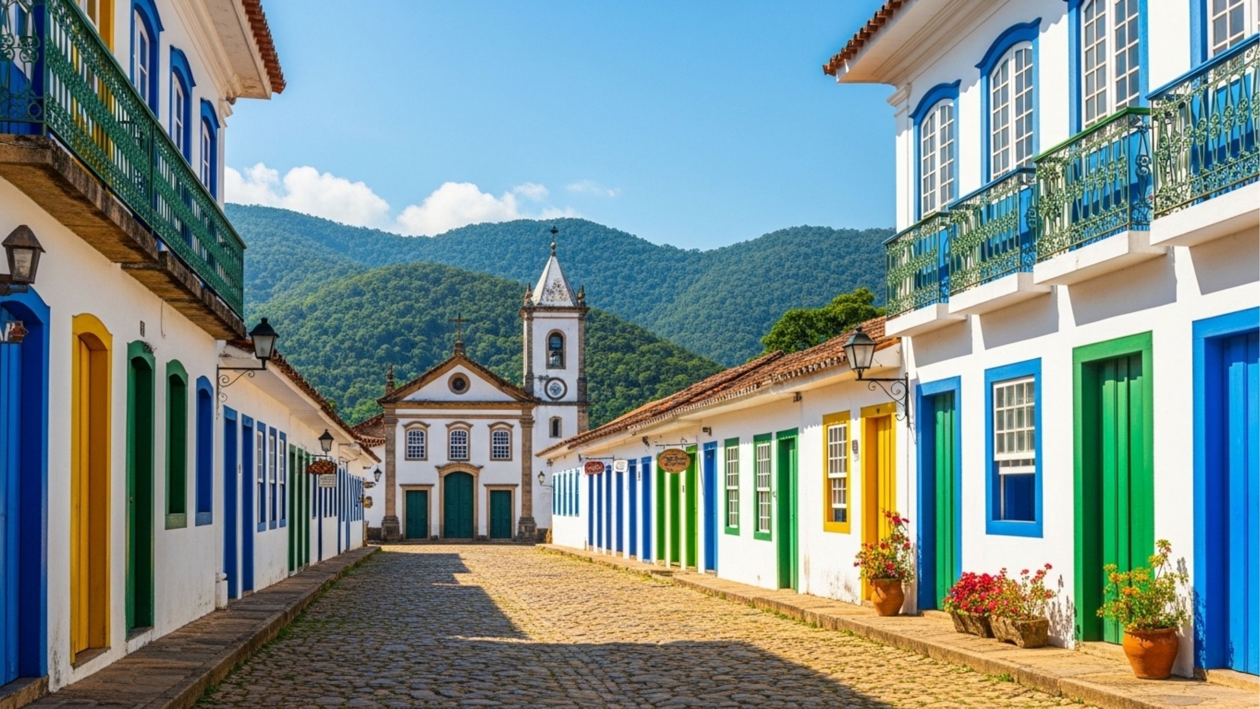 Caminhar pelo centro histórico de Paraty é como atravessar séculos de história. As ruas de pedra irregular, conhecidas como pé de moleque, conduzem o visitante por casarões brancos com janelas coloridas e igrejas seculares que preservam detalhes originais do período colonial.