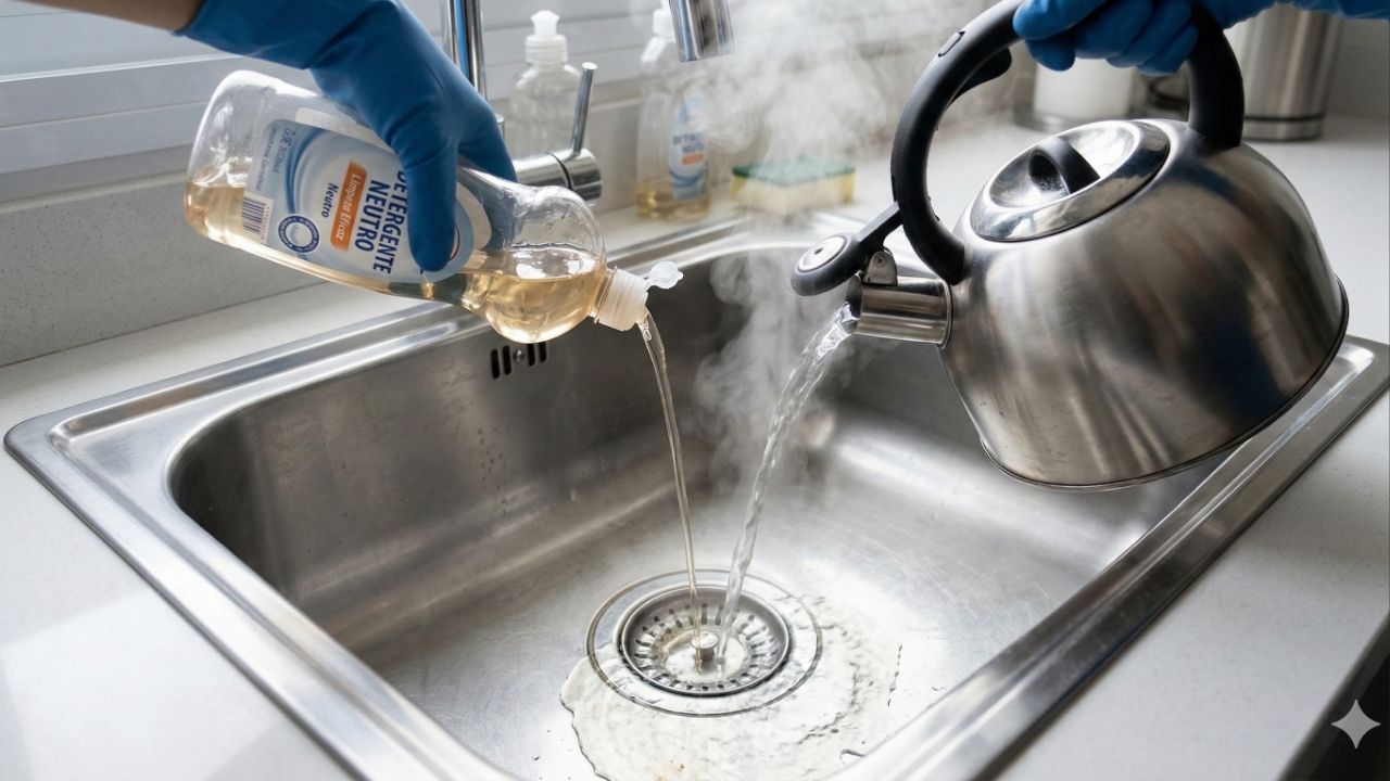 A química básica oferece soluções caseiras, econômicas e seguras para a manutenção preventiva do sistema de esgoto do seu lar. O detergente neutro possui propriedades emulsificantes poderosas, sendo perfeitamente capaz de quebrar as moléculas oleosas complexas em partículas minúsculas e inofensivas. Quando aliamos a força desse produto de limpeza à alta temperatura da água fervente, criamos uma corrente de higienização dinâmica e altamente desobstrutiva. Essa combinação inteligente derrete as placas solidificadas nas paredes plásticas, permitindo que a sujeira escoe livremente para a rede pública de tratamento.