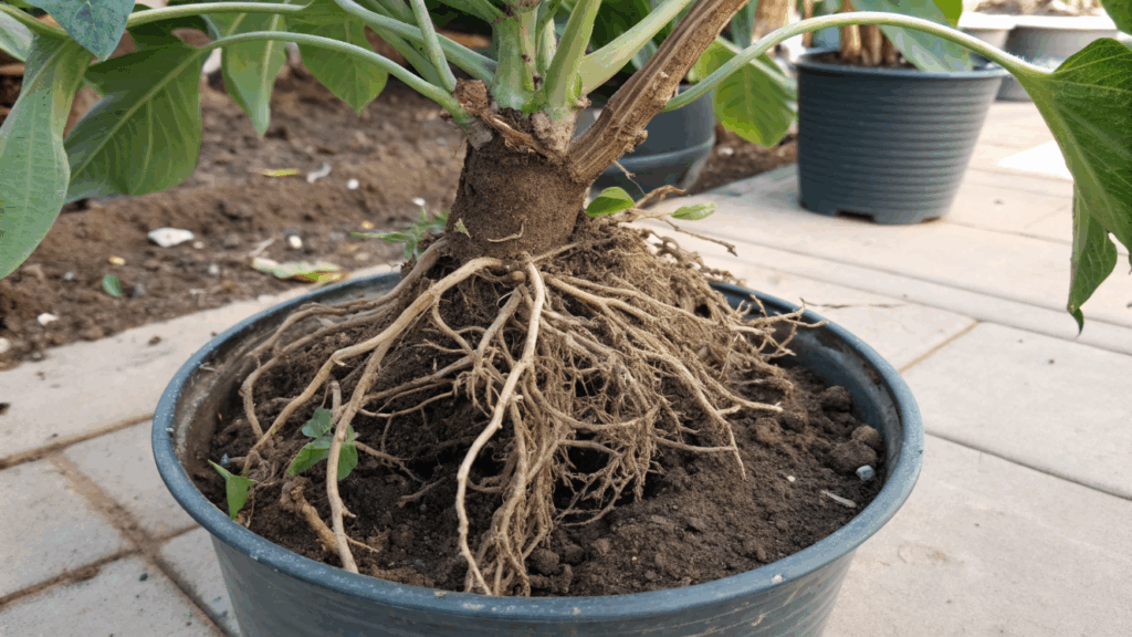 Quando a planta não cresce, a causa pode estar na raiz. Vaso pequeno, excesso de água, solo compactado e falta de nutrientes afetam o sistema radicular e travam o desenvolvimento.