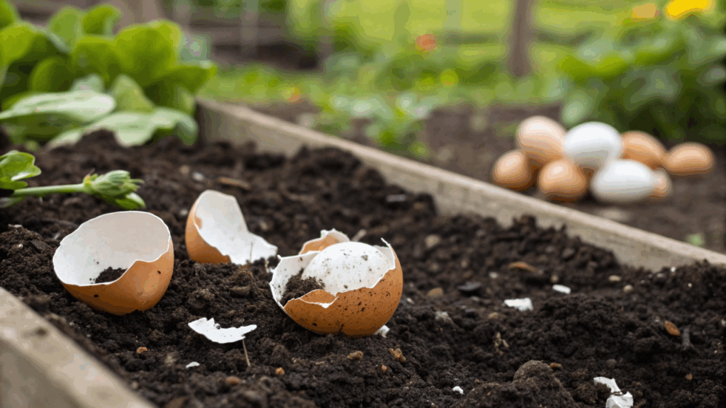 A casca de ovo pode ser usada como adubo quando lavada, seca e triturada em pó fino. Rica em cálcio, atua lentamente no solo, corrige acidez e beneficia hortas.