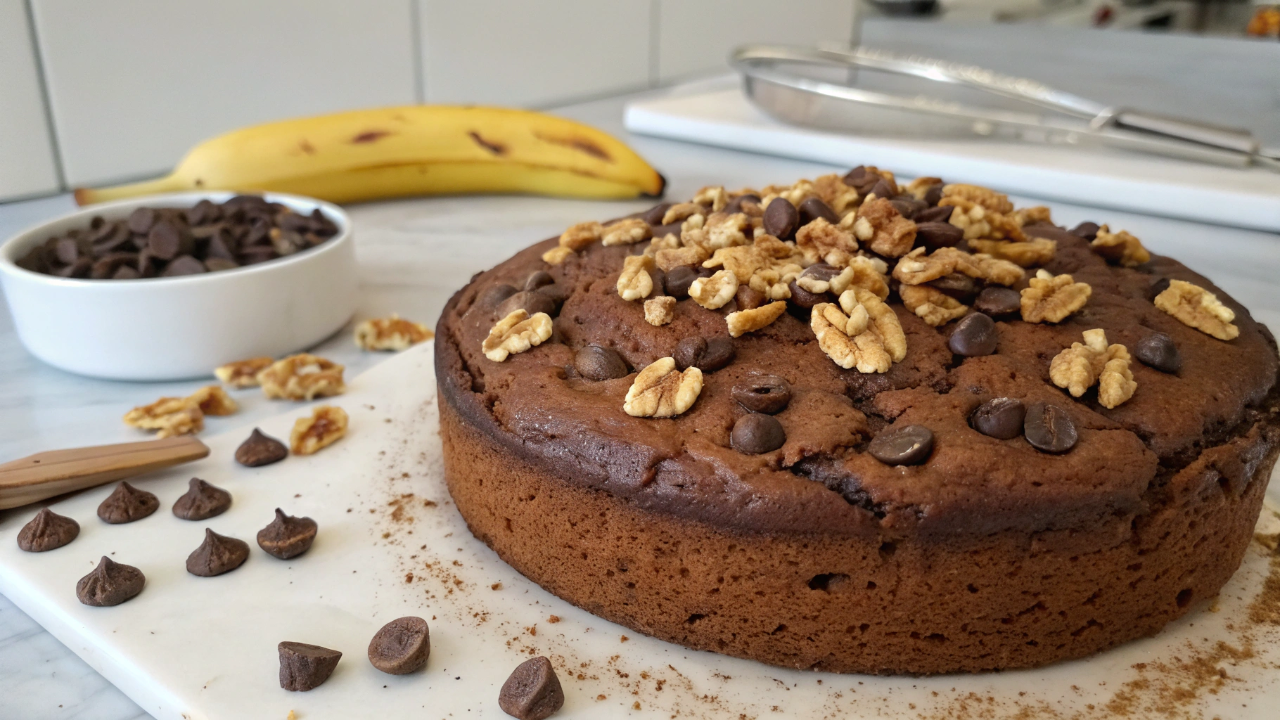 A receita de bolo de banana com chocolate e nozes combina bananas maduras, chocolate e oleaginosas em um preparo simples, úmido e versátil.