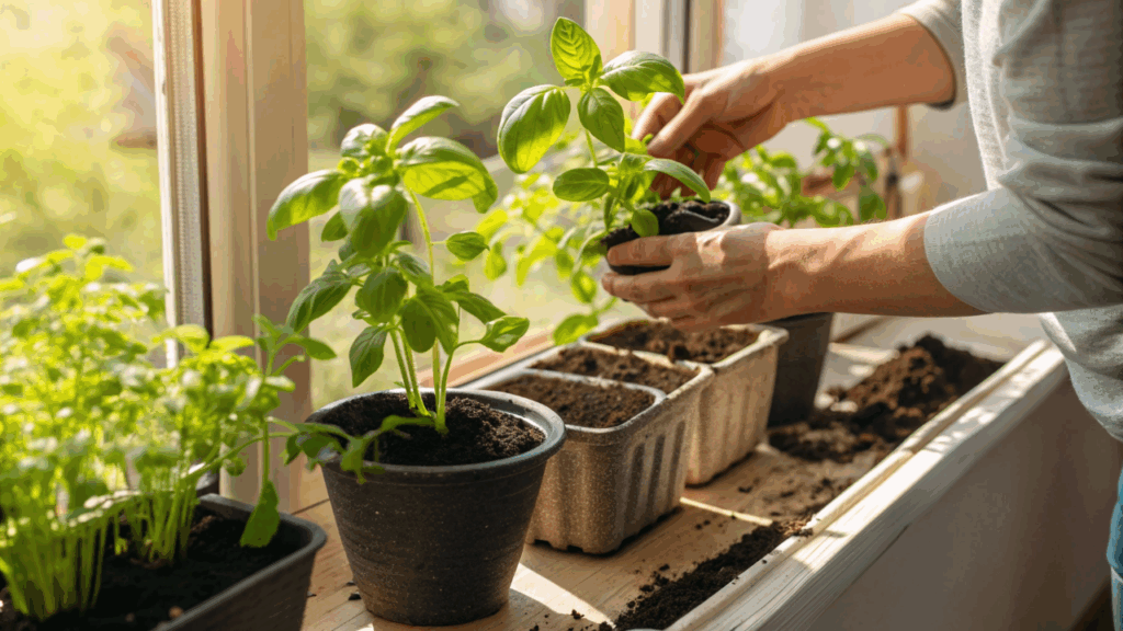 Plantar manjericão em casa garante folhas frescas o ano todo. Vasos bem iluminados e adubação orgânica favorecem crescimento rápido.