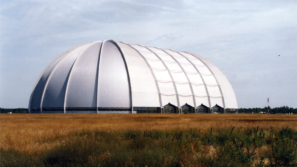 No final dos anos 1990, a empresa alemã CargoLifter AG comprou um antigo aeródromo militar para construir dirigíveis de carga. O hangar ficou pronto em novembro de 2000, mas a aeronave que deveria ocupá-lo, o CL160, nunca foi construída. A CargoLifter declarou falência em meados de 2002 e deixou para trás uma estrutura vazia de proporções absurdas: 360 metros de comprimento, 210 de largura e 107 de altura, com volume interno de 5,5 milhões de m³.