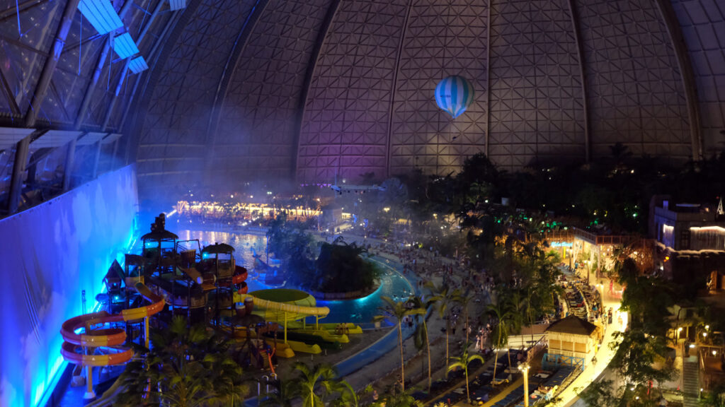 Você precisa cruzar a porta desse hangar no meio do inverno, sentir o ar quente bater no rosto e entender por que mais de um milhão de pessoas por ano trocam a neve alemã por uma praia que existe apenas porque alguém olhou para um galpão vazio e enxergou o oceano.