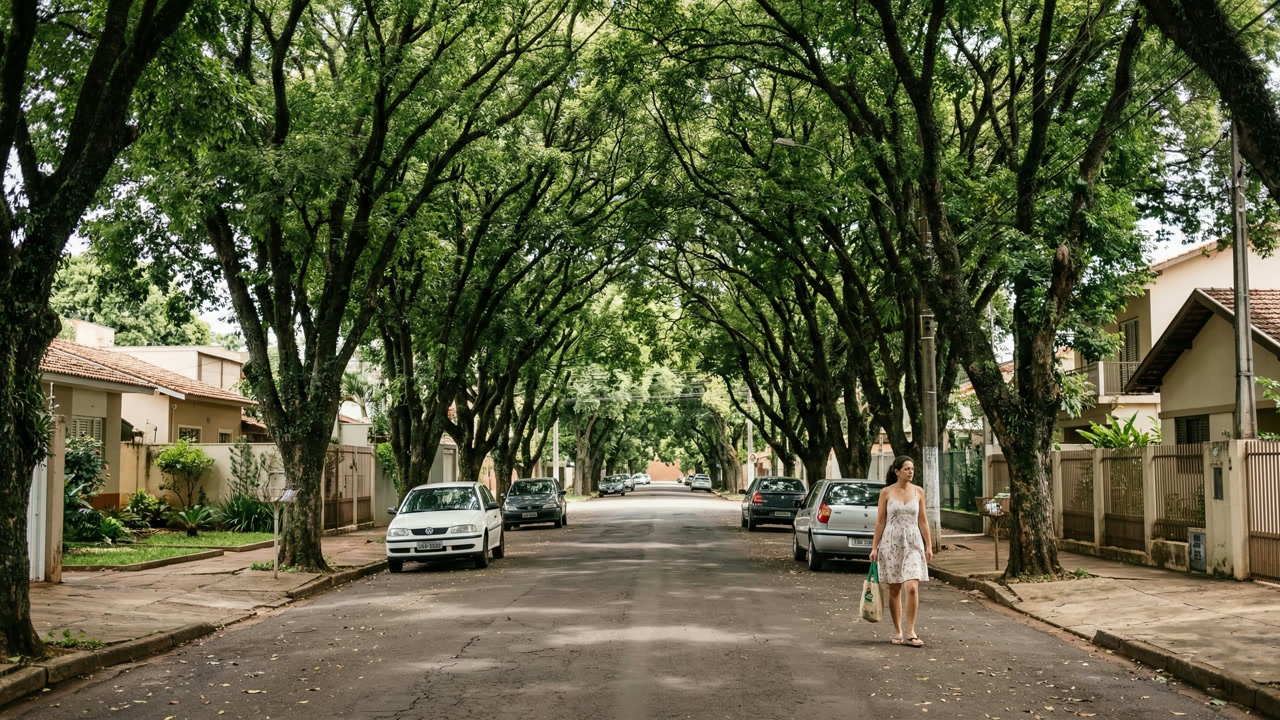 Quem dirige pelas avenidas de Maringá demora a perceber o asfalto: as copas das árvores se encontram no alto e transformam ruas inteiras em túneis verdes. A cidade no noroeste do Paraná nasceu planejada para ser assim, e hoje é a mais arborizada do Brasil entre municípios com mais de 100 mil habitantes.