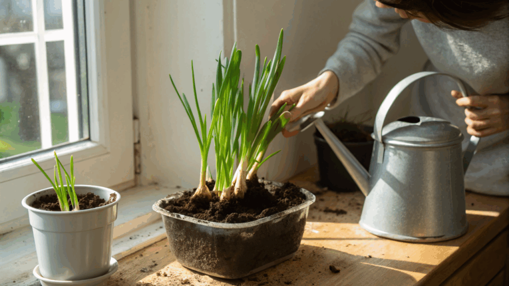 Embora seja uma planta resistente, alguns cuidados simples ajudam a acelerar o crescimento da cebolinha.
