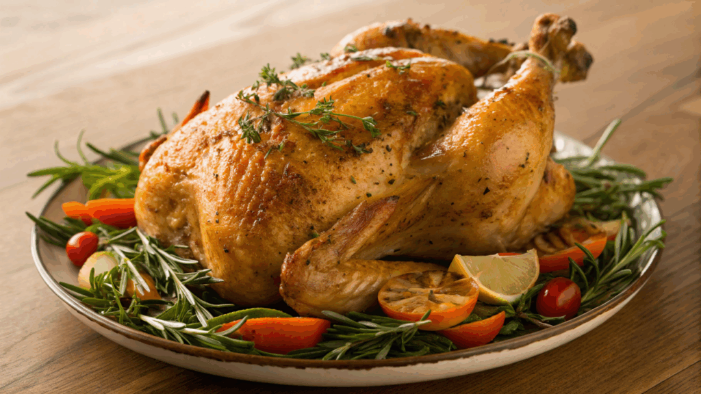 Aprenda como fazer frango assado para almoço de domingo com pele crocante e carne suculenta.