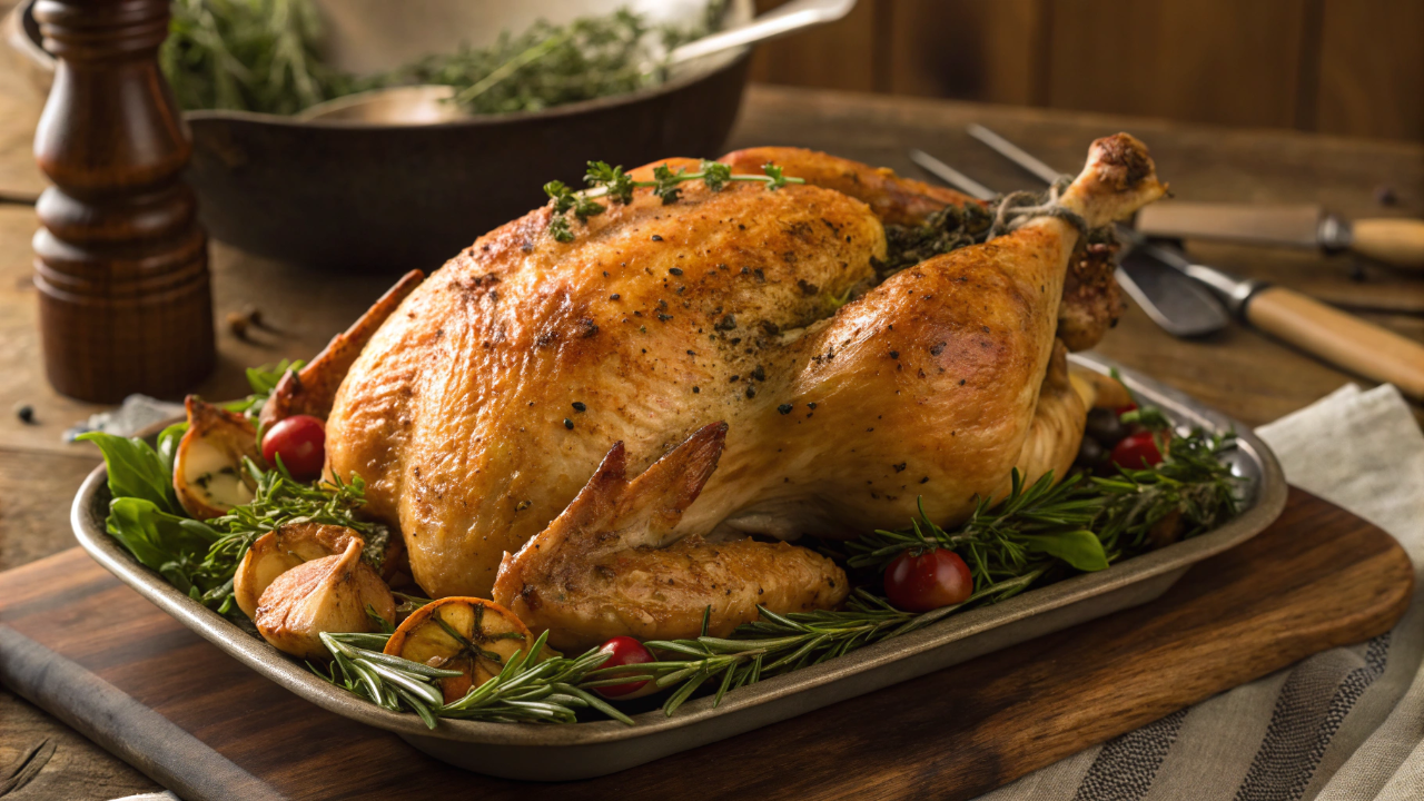 Aprenda como fazer frango assado para almoço de domingo com pele crocante e carne suculenta.