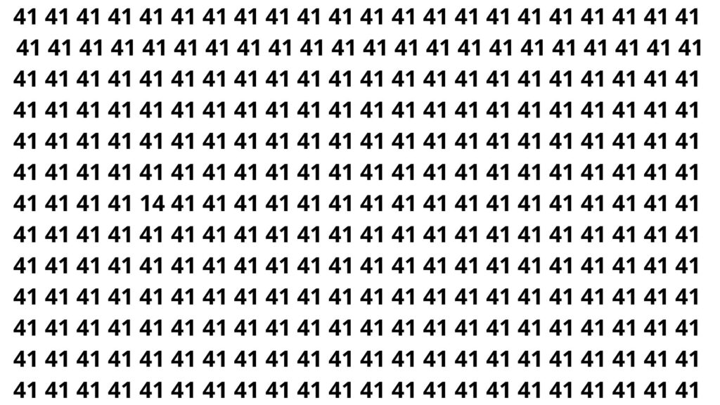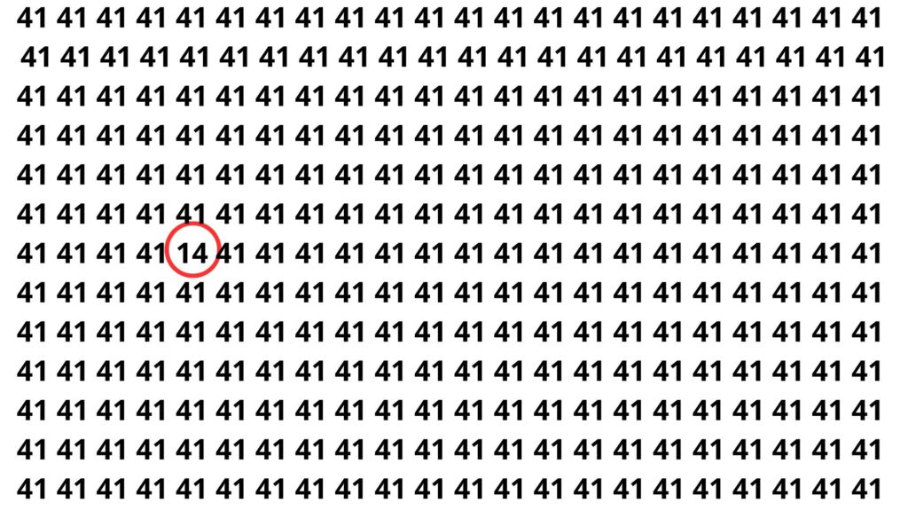 Parabéns por chegar até aqui! O número escondido entre os outros é 14. Ele foi camuflado em meio a dezenas de 41, explorando nosso padrão natural de percepção. Muitos não conseguem encontrá-lo nos primeiros segundos, tornando este desafio ainda mais envolvente.