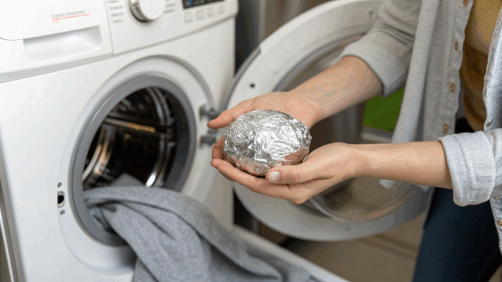 Usar uma bola de papel alumínio na máquina reduz estática, protege tecidos delicados e evita fiapos.