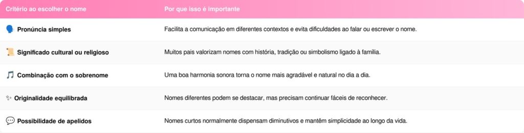 A escolha do nome é uma decisão importante para muitas famílias. Embora a estética seja um fator relevante, especialistas recomendam avaliar também o significado e a adaptação do nome ao longo da vida.