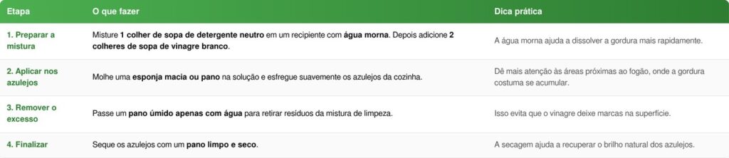 O método de como limpar azulejos engordurados usando detergente e vinagre mostra que soluções simples muitas vezes são suficientes para resolver problemas comuns da casa.