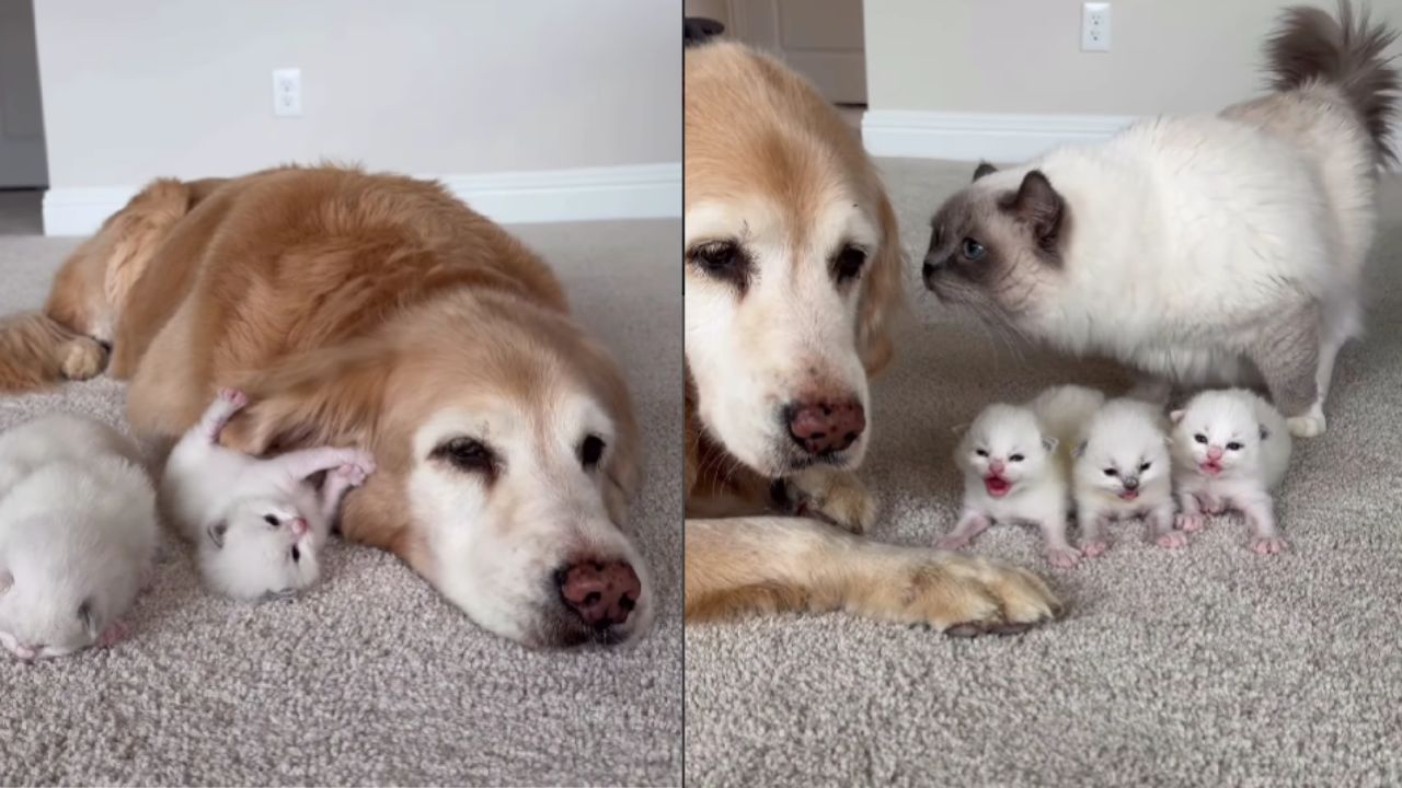 Você já imaginou uma gata levando seus filhotes para conhecer a melhor amiga, que por acaso é uma cadela? Foi exatamente isso que aconteceu com Josie, uma Ragdoll muito carinhosa, e Lucy, uma Golden Retriever tranquila, que conquistaram milhões de pessoas nas redes sociais com uma amizade que começou quando as duas ainda eram bem jovens.