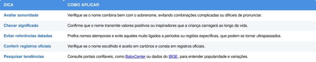 Selecionar um nome raro requer equilíbrio entre exclusividade e praticidade. Algumas dicas recomendadas por especialistas incluem: