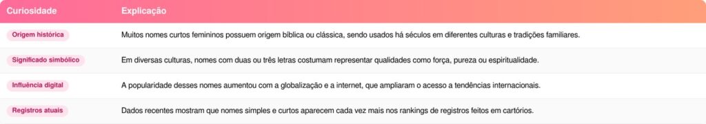 Escolher um nome é uma das primeiras decisões importantes na vida de uma família. Nos últimos anos, muitos pais passaram a priorizar nomes femininos curtos, principalmente por serem fáceis de escrever, pronunciar e lembrar.