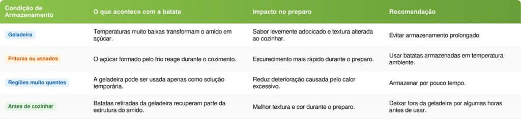 Guardar batatas no armário errado pode parecer um detalhe pequeno, mas faz grande diferença no dia a dia da cozinha. Luz, calor e umidade são fatores que aceleram a deterioração e comprometem o sabor.