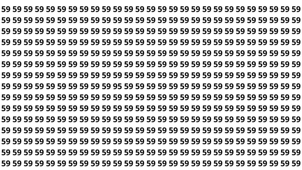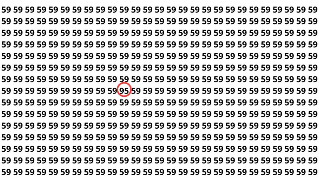 O desafio de encontrar o número 95 entre muitos 59 testa atenção, foco e velocidade mental. Dividir a imagem em partes e variar o foco ajuda a perceber detalhes e melhorar o desempenho.