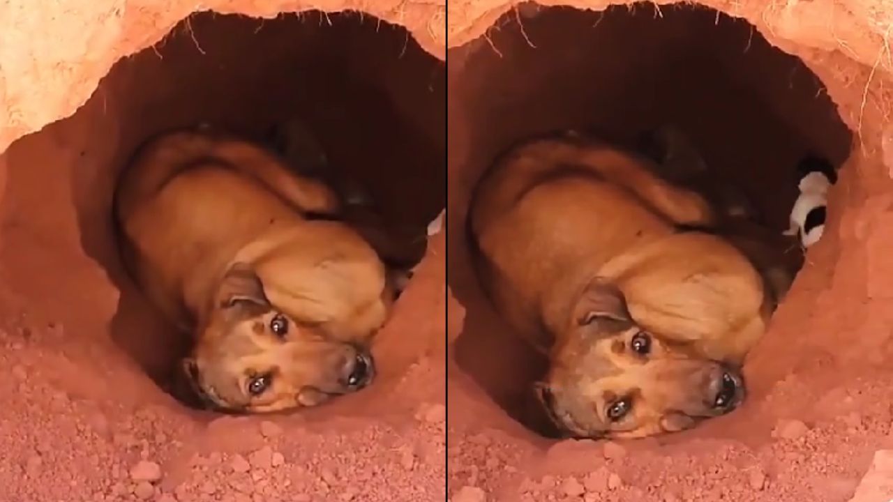 Uma cadela de rua grávida cavou um buraco na terra para proteger seus filhotes recém-nascidos. A cena chamou atenção de moradores e levou a um resgate que mudou o destino da mãe e da ninhada, revelando a força do instinto e da solidariedade.
