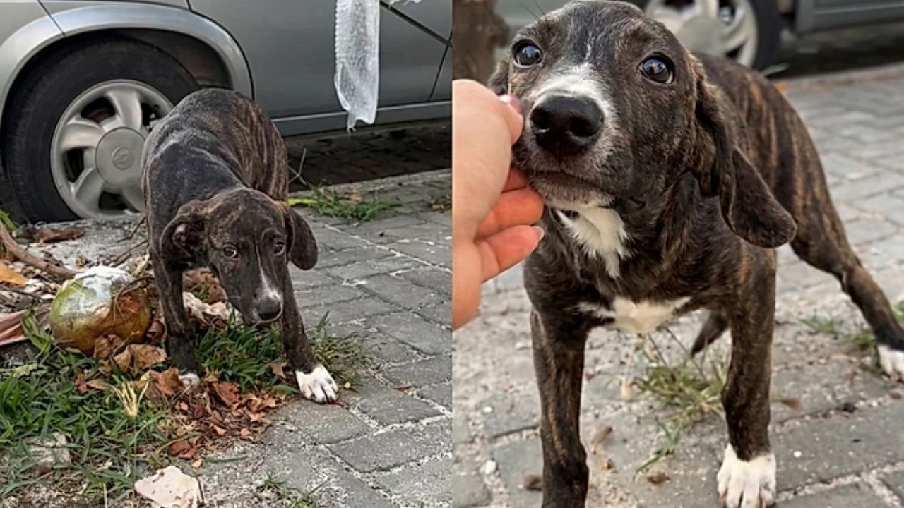 Quando Brenda disse que iria levá-lo, algo mágico aconteceu. O filhote começou a pular de alegria e balançar o rabinho, como se entendesse que finalmente tinha encontrado alguém disposto a cuidar dele. Ele passou a segui-la espontaneamente, confiando em cada passo.