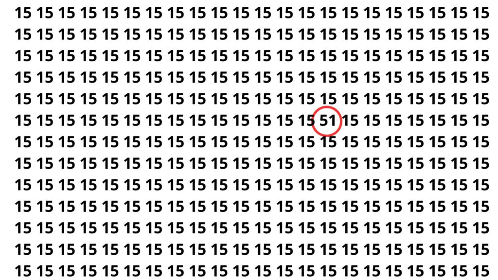 Parabéns a quem conseguiu manter os olhos atentos! O número escondido neste desafio era 51. Ele se camuflava perfeitamente entre os 15, enganando rapidamente o cérebro e testando sua atenção aos detalhes. Apenas 5 em cada 20 pessoas conseguem identificar o número de primeira, mostrando como esses puzzles realmente desafiam a percepção.