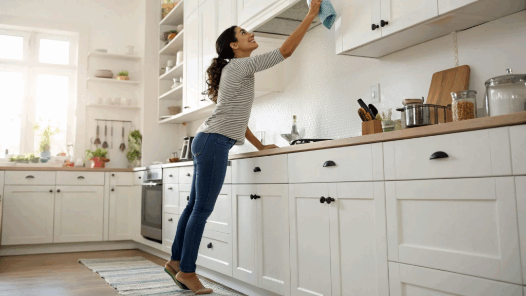 Na cozinha, partículas de óleo evaporam durante o preparo de alimentos e acabam aderindo aos móveis. Com o tempo, formam uma película grudenta que atrai poeira e escurece o material. É exatamente nesse ponto que o vinagre atua.