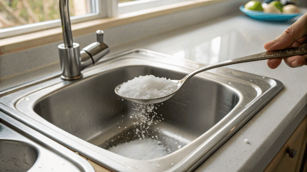 Colocar bicarbonato de sódio no ralo antes de dormir em casa previne entupimentos, elimina odores e mantém canos limpos de forma natural.