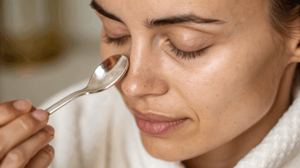 O truque da colher gelada ajuda a reduzir olheiras rapidamente, diminuindo inchaço e melhorando a circulação. Aplicável duas vezes ao dia, é natural, barato e eficaz.