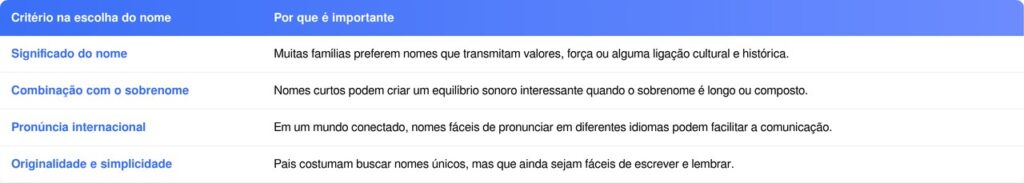 Além disso, os nomes masculinos com três letras carregam uma estética moderna. Eles funcionam bem em diferentes idiomas e se adaptam facilmente a sobrenomes longos, algo comum em países como o Brasil.