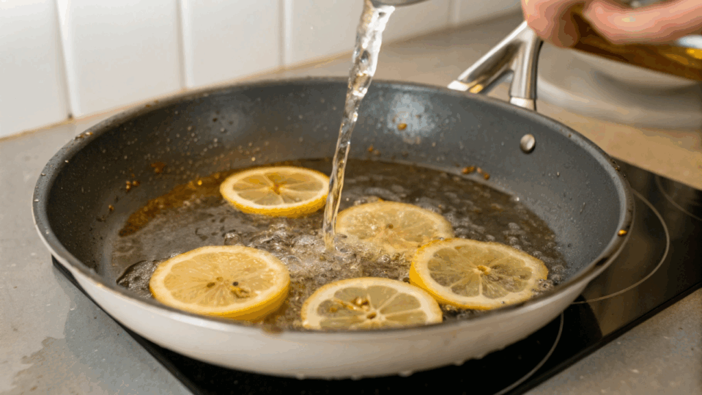 A técnica de água quente com limão ajuda a remover gordura grudada nas panelas ao combinar calor e ácido cítrico.