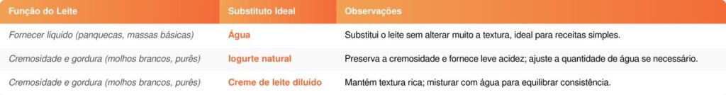 Nem todas as substituições funcionam da mesma forma. A escolha ideal depende da função do leite na preparação.