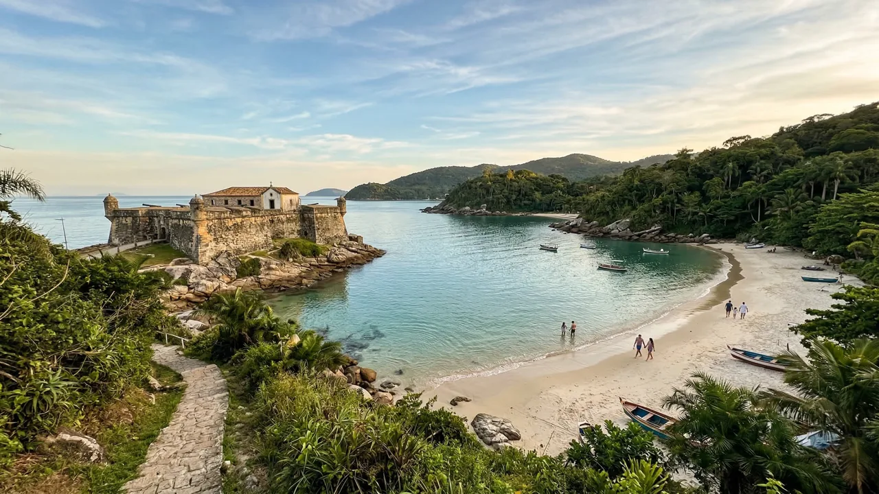Entre a badalação de Jurerê Internacional e o sossego da Praia da Daniela, uma estrada estreita e íngreme desce até uma enseada de areia clara e mar raso. A Praia do Forte, no extremo norte da Ilha de Santa Catarina, esconde um dos conjuntos históricos mais bem preservados do litoral brasileiro, aos pés de uma fortaleza que viu espanhóis e portugueses disputarem o sul do Brasil.