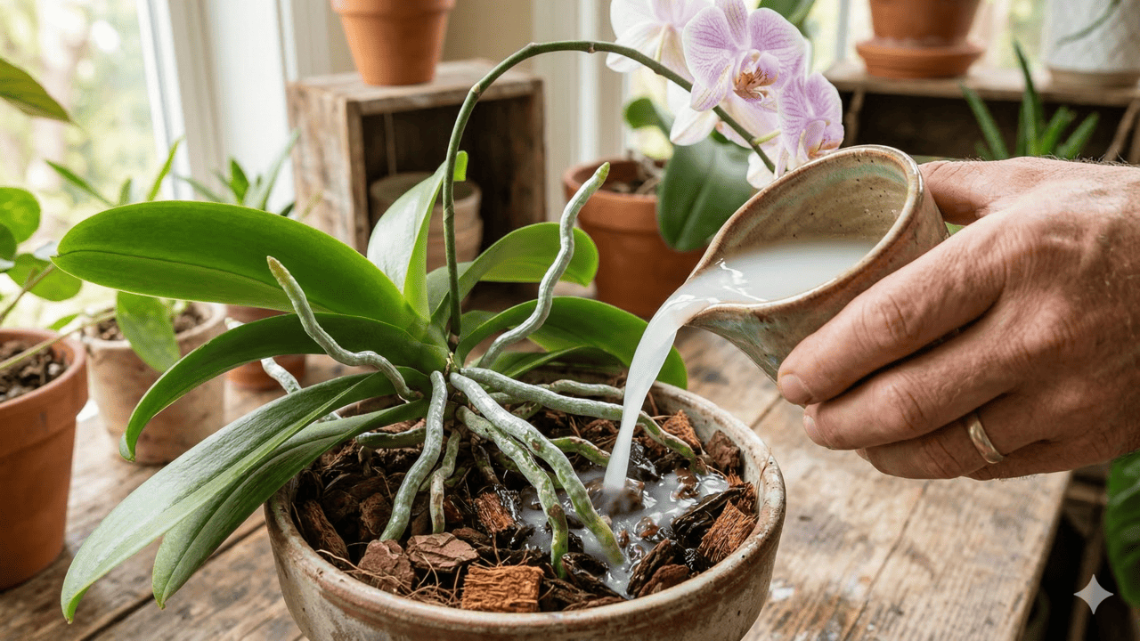Quais cuidados extras ajudam a potencializar a água de arroz para orquídeas