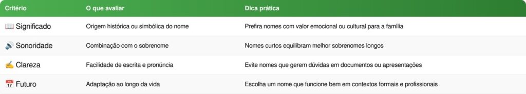 A escolha de um nome vai além da estética. Existem fatores importantes que devem ser considerados para garantir uma decisão equilibrada.