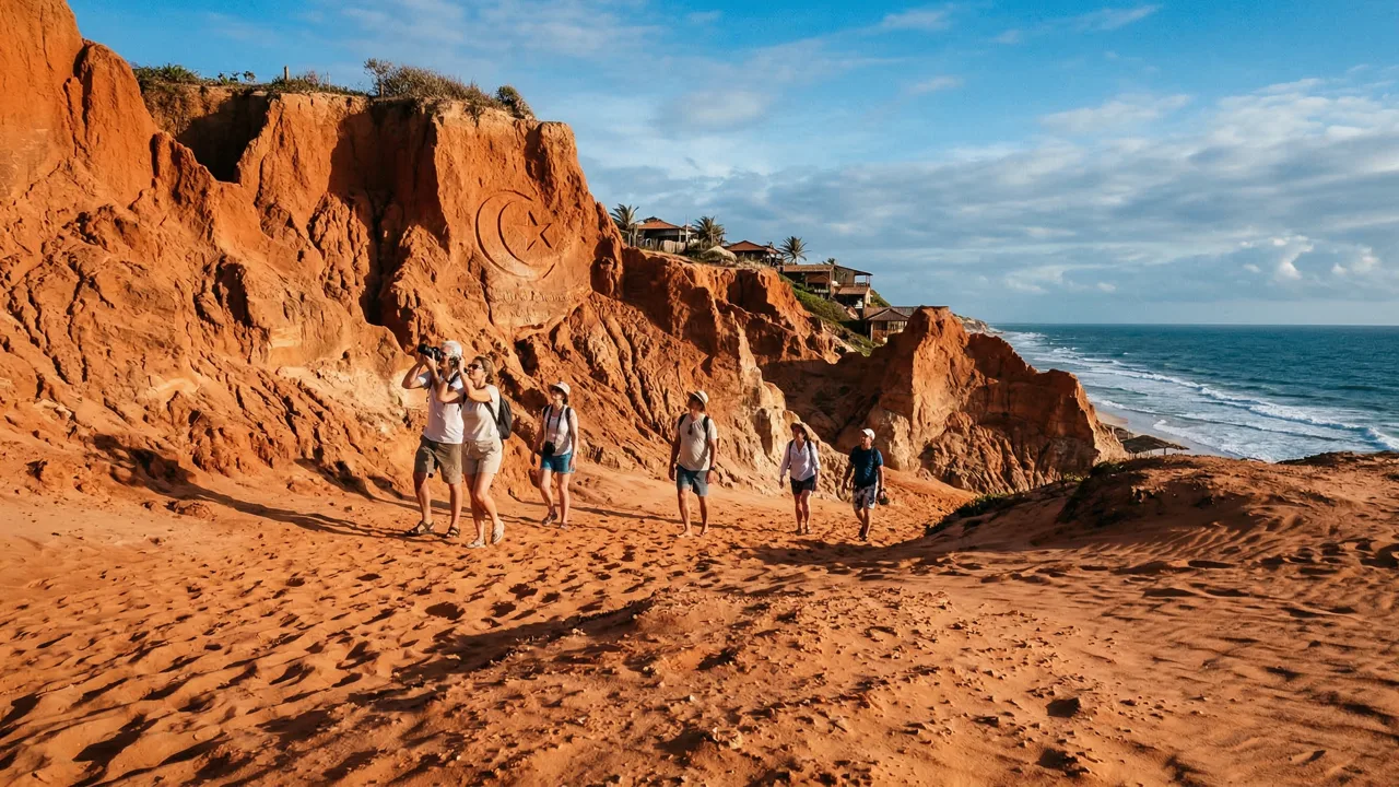 Canoa Quebrada mistura falésias esculpidas pelo vento, a memória de uma embarcação que nunca voltou ao mar e um símbolo islâmico que ninguém planejou transformar em identidade turística. A combinação entre paisagem bruta e história improvável é o que diferencia essa vila de qualquer outro trecho do litoral cearense.