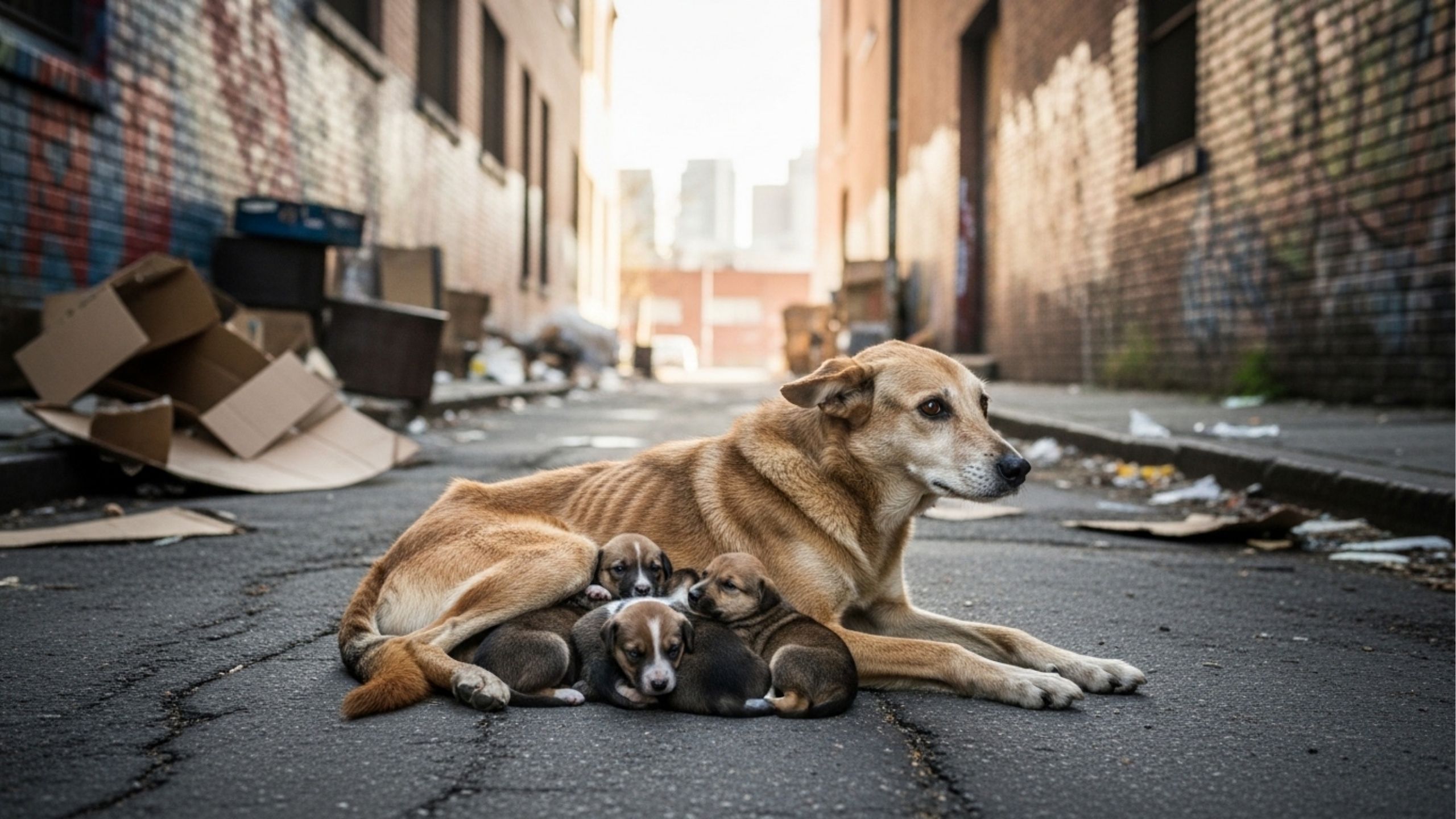 O comportamento protetor é uma característica natural entre os cães, principalmente nas mães que acabaram de dar à luz. Mesmo em situações difíceis, muitas continuam vigilantes e próximas da ninhada, garantindo segurança e calor para os filhotes.