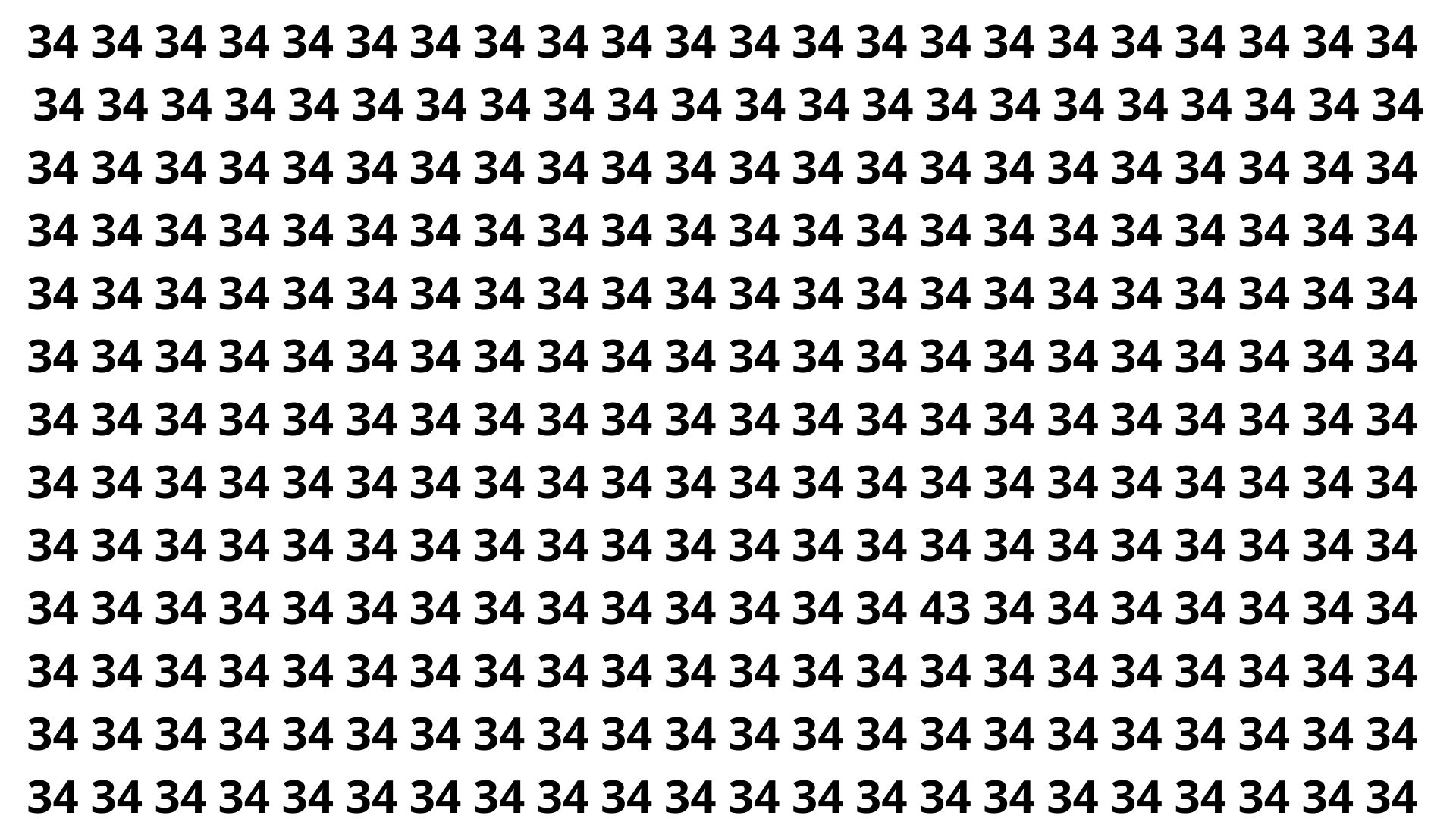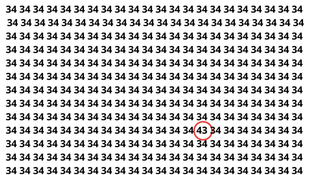Parabéns por chegar até aqui! O número escondido neste puzzle visual é 43. Muitos falham porque ele se mistura perfeitamente entre os 34, e apenas uma observação detalhada revela a diferença. A sutileza do traço e a proximidade com outros números são o que tornam este desafio tão envolvente.