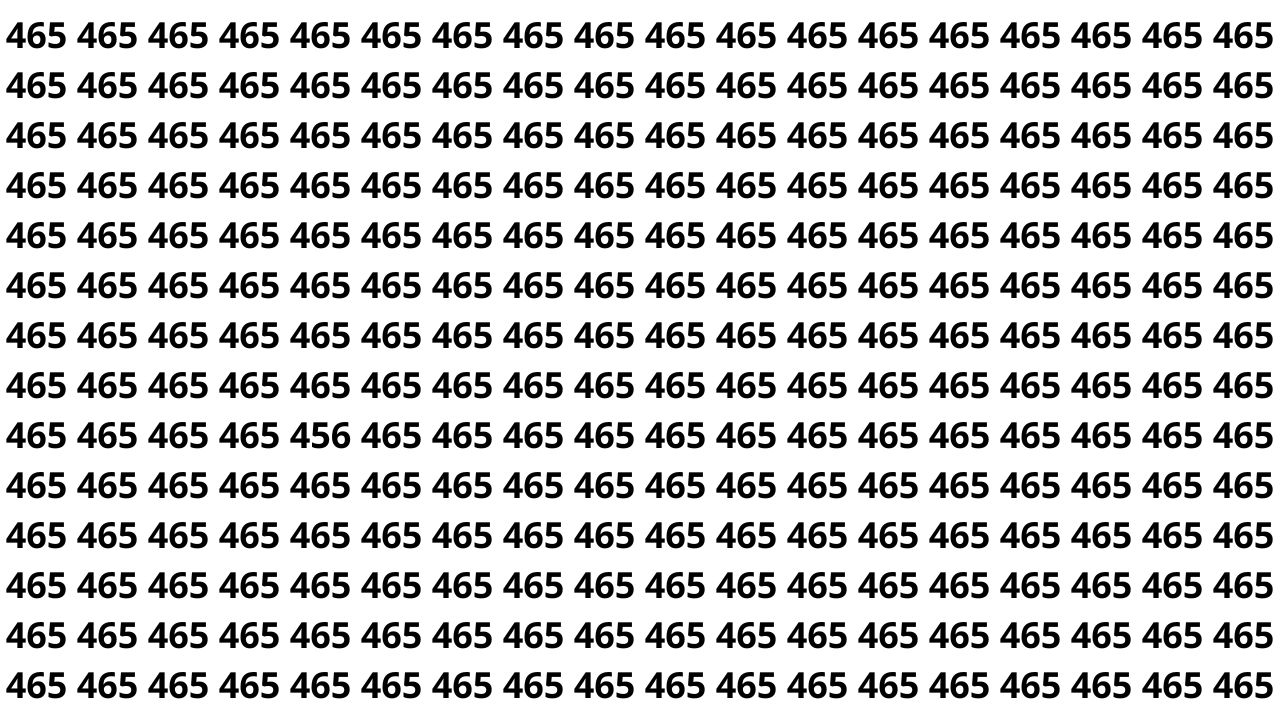 Neste desafio, dezenas de combinações numéricas muito parecidas preenchem totalmente a imagem. Entre vários 465 repetidos, há um único número diferente, que precisa ser localizado em até 5 segundos, criando quase uma ilusão de ótica.