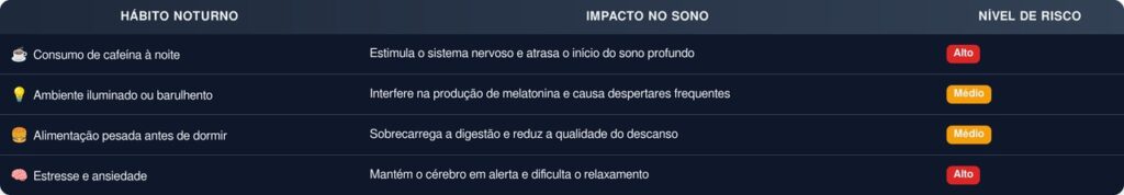 Embora o uso de telas seja o principal fator, outros hábitos também influenciam negativamente o descanso: