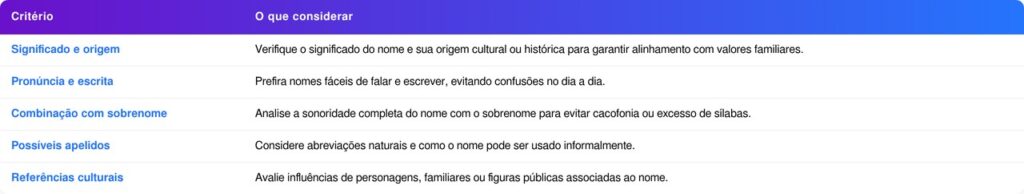 Além disso, muitos pais buscam equilíbrio entre originalidade e tradição. Ou seja, evitar nomes muito comuns, mas também fugir de escolhas difíceis de entender no dia a dia.