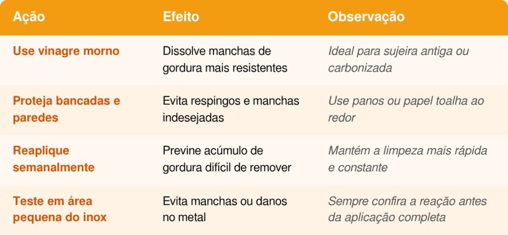 Para potencializar os resultados do truque de limpeza, alguns cuidados simples fazem toda a diferença. Pequenos ajustes na aplicação e manutenção das grades ajudam a remover manchas mais resistentes, evitar acidentes e garantir que o método seja eficaz por mais tempo.